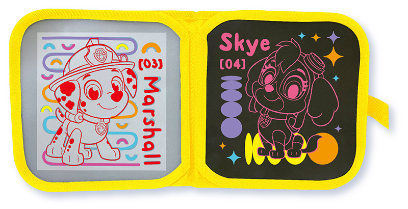 ●內容物:含6枝特殊彩繪筆、6頁彩繪畫板(其中2頁為透明畫板)和8張汪汪隊描繪塗鴉紙。