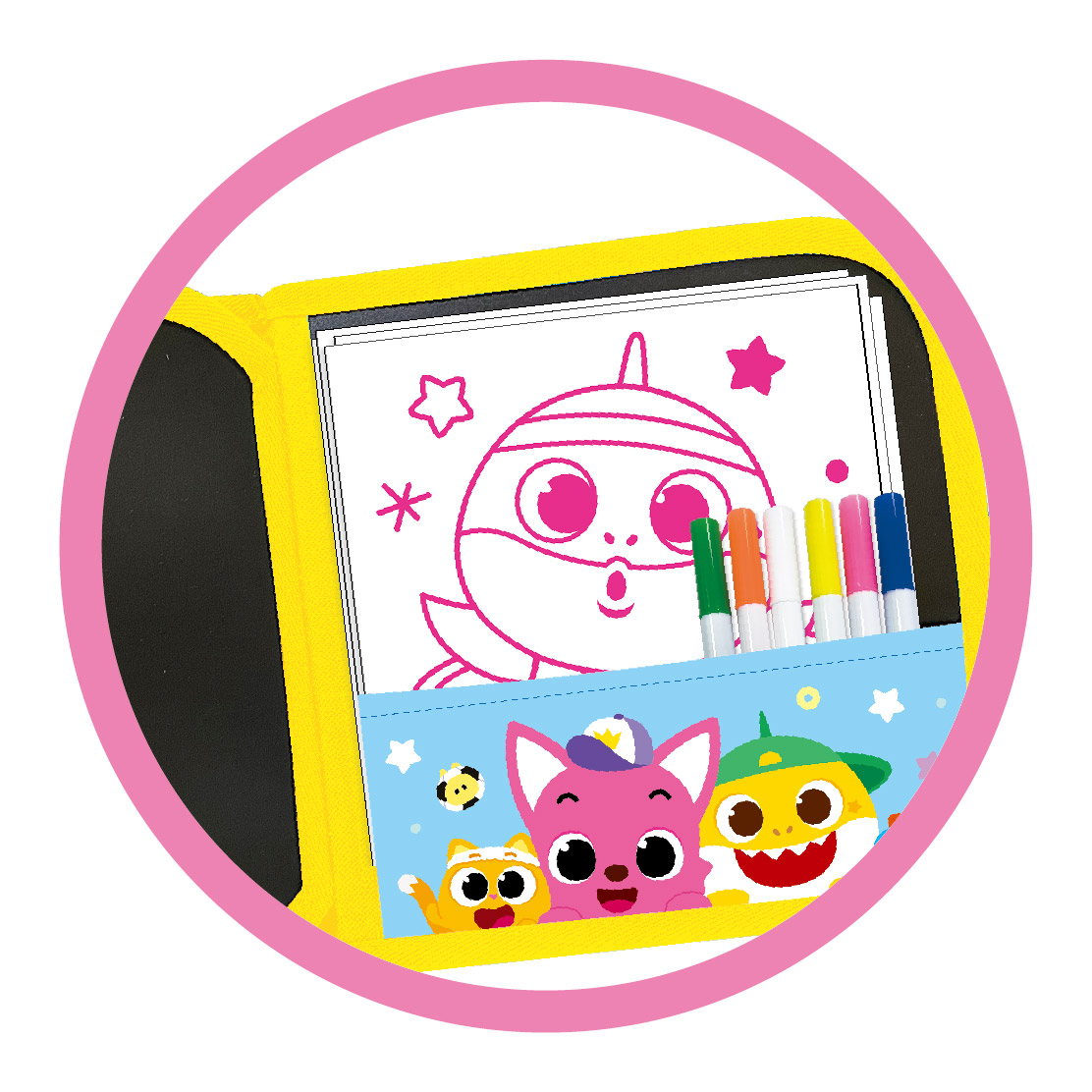 1. 畫冊附口袋輕鬆收納畫筆和描圖紙,還有鯊魚寶寶魔鬼氈包覆畫冊!