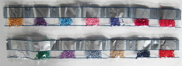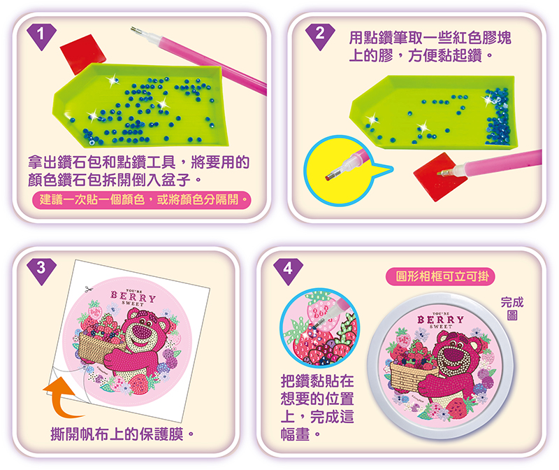 2.將鑽石包倒入小盤子(若圖案上標示為A,就找到A字母的鑽石包)。