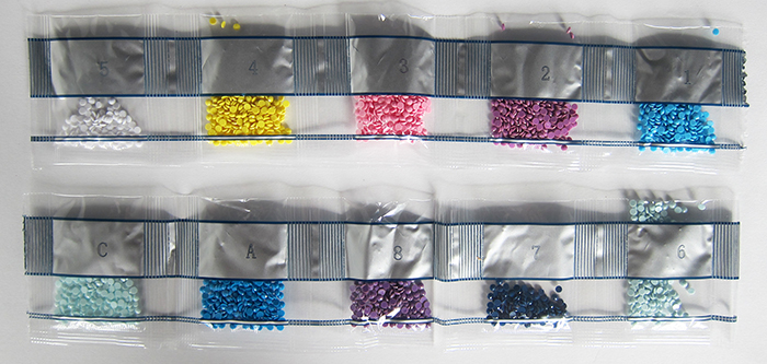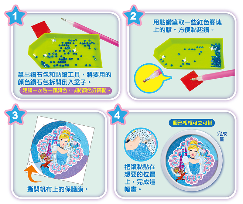 2.將鑽石包倒入小盤子(若圖案上標示為A,就找到A字母的鑽石包)。