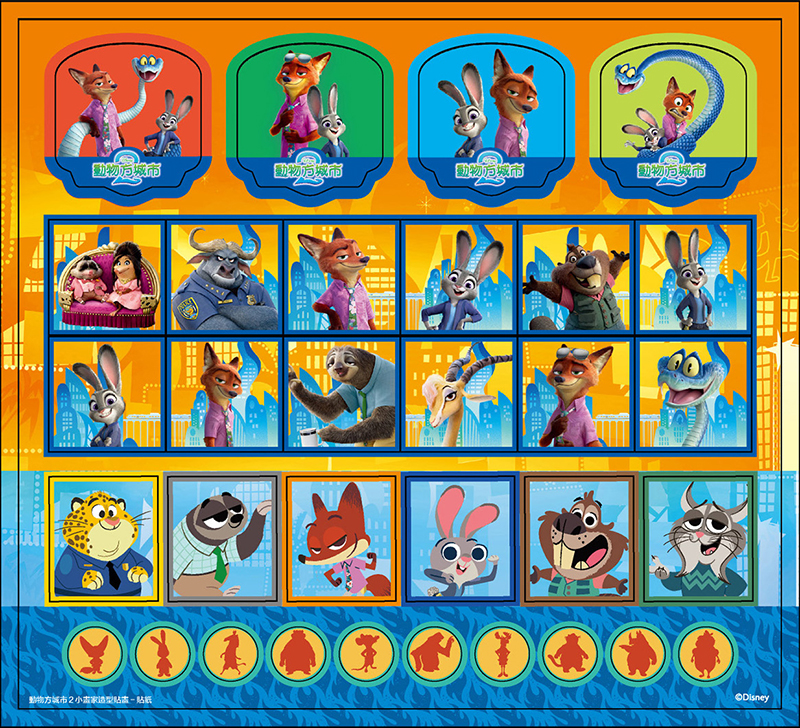 ◆動物方城市2 小畫家造型貼畫有9頁彩色頁與9頁著色頁,並附一張動物方城市2 電影角色圖案的彩色貼紙。