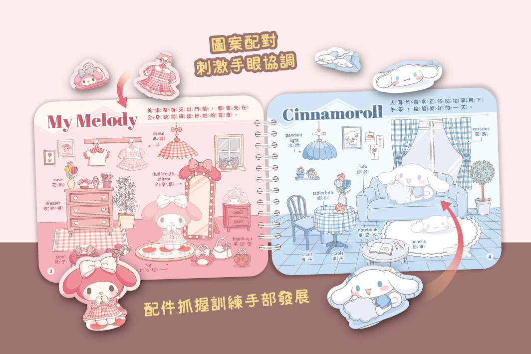 1. 打開寶貝貼貼書,準備好進入三麗鷗明星的房間。