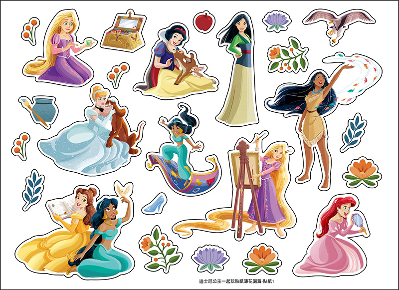 ◆內容含4張迪士尼公主專屬背景、4張角色造型貼紙和6頁迪士尼公主人物著色頁!