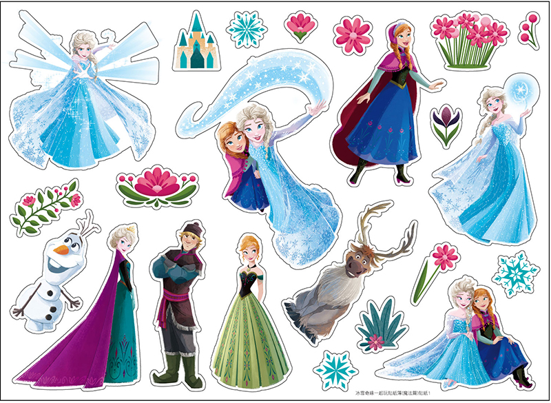 ◆內容含4個冰雪奇緣場景、4頁角色造型貼紙和6頁人物著色頁!