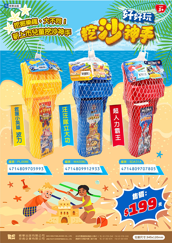 汪汪隊立大功 好好玩挖沙神手戴上神手,化身海灘搜救隊!不只是挖沙,更是汪汪隊的秘密裝備。孩子的第一條機械手臂,讓挖沙變得更有趣!編號WA008C條碼4714809912933尺寸約34.5×12×8 cm出版日2026.04.24年齡3歲以上定價199元優惠價159元數量 - + 加入購物車 返回上頁 商品說明 GOOD Products ◆戴上神手,化身海灘搜救隊!不只是挖沙,更是汪汪隊的秘密裝備。。 ▲產品特色:挖土、搬運、平整,一氣呵成!讓孩子在挖沙中體驗機械運作。 ★通過ST玩具檢驗合格,好安心。 ◆ 海灘最強戰力!三大超人氣IP,助你打造夢幻沙中帝國。 同系列商品 Similar Products 加入購物車 超人力霸王 好好玩挖沙神手 編號: SDA31A 定價 $199 優惠價 $159 加入購物車 波力 好好玩挖沙神手 編號: PL008E 定價 $199 優惠價 $159 加入購物車 迪士尼公主 摺疊桶玩沙組 編號: QH038C 定價 $260 優惠價 $208 加入購物車 汪汪隊立大功 摺疊桶玩沙組 編號: WA008B 定價 $260 優惠價 $208 加入購物車 冰雪奇緣 寶貝戲水玩沙組 編號: QH038B 定價 $260 優惠價 $208 你可能會喜歡 YOU MAY ALSO LIKE 加入購物車 汪汪隊立大功 親子拋接球 編號: WA038B 定價 $160 優惠價 $128 加入購物車 汪汪隊立大功 積木萬花筒 編號: WA033M 定價 $260 優惠價 $208 加入購物車 汪汪隊立大功 布球黏黏樂 編號: WA038H 定價 $220 優惠價 $176 加入購物車 汪汪隊立大功 晶彩泡泡棒 編號: WA031C 定價 $120 優惠價 $96 加入購物車 汪汪隊立大功 彈射接接樂 編號: WA033F 定價 $280 優惠價 $224 加入購物車 汪汪隊立大功 彈力小籃球 編號: WA038C 定價 $199 優惠價 $159 加入購物車 汪汪隊立大功 小小世界萬花筒 編號: WA033N 定價 $199 優惠價 $159 加入購物車 汪汪隊立大功 探險家望遠鏡─活力篇 編號: WA033V 定價 $189 優惠價 $151 加入購物車 迪士尼公主 摺疊桶玩沙組 編號: QH038C 定價 $260 優惠價 $208 加入購物車 汪汪隊立大功 New寶貝黏巴球 編號: WA033D 定價 $260 優惠價 $208 加入購物車 汪汪隊立大功 陪我玩羽毛球 編號: WA009K 定價 $399 優惠價 $319 加入購物車 汪汪隊立大功 光感彈彈球 (M) 編號: WA038M 定價 $139 優惠價 $111 加入購物車 超人力霸王 光感彈彈球 (K) 編號: SDA38K 定價 $139 優惠價 $111 加入購物車 超人力霸王 好好玩挖沙神手 編號: SDA31A 定價 $199 優惠價 $159